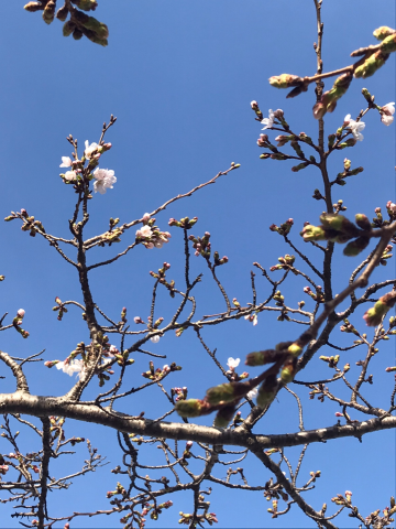 ポカポカ陽気で桜がチラホラ咲き出しました